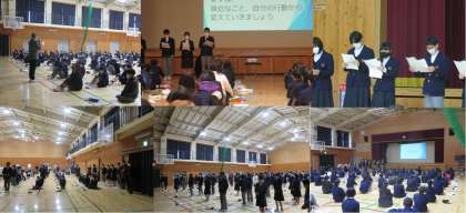 代替わりした生徒会本部からは,最高学年まであと数か月,自覚をもってしっかりと行動できるようになっていきましょうとアピールがありました。嵯峨中の顔になる2年生の皆さんの成長に期待しています。