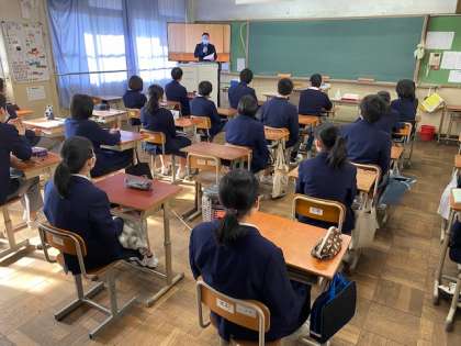 校長先生のお話のあと,たくさんの伝達表彰(多数の生徒が優秀な賞をいただきました),生徒会アピール,生徒指導主任よりと行いました。