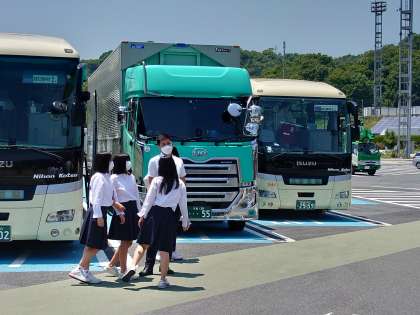 福山サービスエリアまできました!バスレクで気持ちもあがり,次はいよいよ広島での昼食です。少し渋滞もでてきましたが,まだまだ皆元気です。