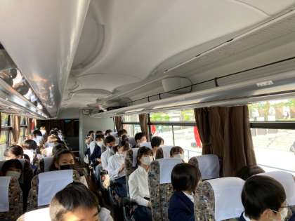 探究活動「宍道湖自然コース」のバス内の様子です。