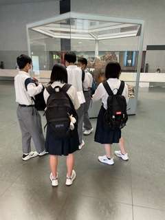 歴史博物館の見学が始まりました。熱心にメモをしたり,写真を撮りながら見学しています。