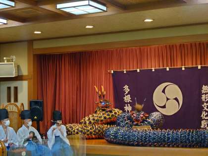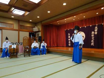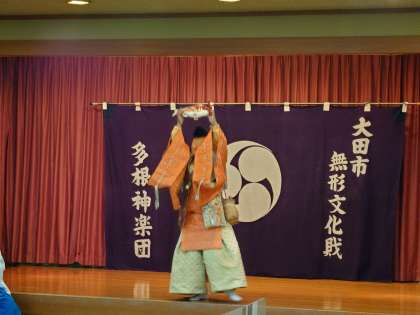 大田市から来ていただいた,多根神楽団の方に来ていただきました。演目は恵比須と大蛇です。太鼓や笛の音の迫力もさるものながら,演者さんの動き,衣装,表現力に生徒たちもひきこまれていました。貴重な体験をさせていただいた多根神楽団の皆さん,本当にありがとうございました。