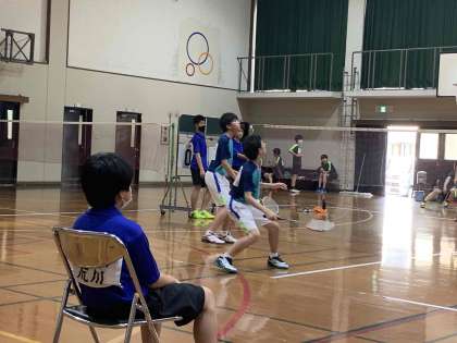 写真は、男子バドミントン部、バスケットボール部の様子です。