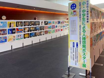 9月28日(木)から、サンサ右京では、区民への人権についての理解を深め、人権尊重のまちづくりを推進することを目的として、「小・中学生による人権啓発ポスター展」が開催されています。