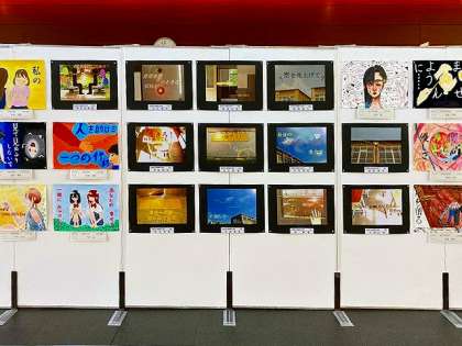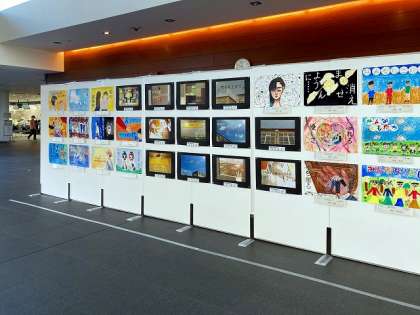 本校の芸術部生徒が、コンピュータを使って夏休みに制作した作品も展示されていますので、お時間がございましたら是非お立ち寄りいただき、ご高覧いただければと思います。
