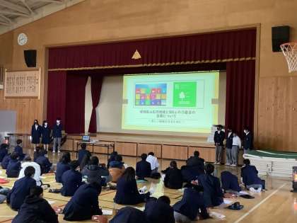 クラスの代表者による発表で、どのクラスもSDGsについて調べたことと、さらに改善点や自分たちが嵯峨嵐山地域の環境についてできることを各クラスで工夫を凝らして発表してくれました。