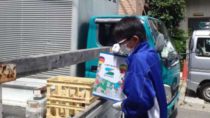 「嵯峨建設」での様子です。プロの作図版を使いながら集中して作図をしたり、体を使ってトラックへの荷物の詰め込みや倉庫への運搬作業を頑張っていました。