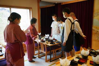 中央観光株式会社 良弥での後片付けのようすです。しっかりと説明を聞いて頑張っています。