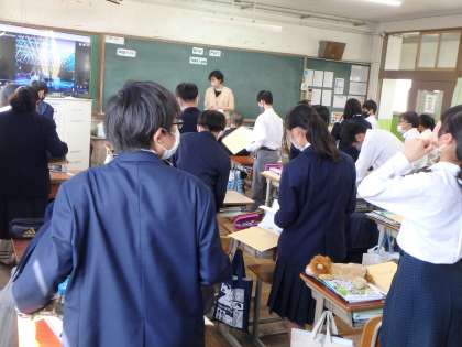 1年生の英語の授業では、英語の歌を歌っていました。リズムよく歌えているのが凄いと思いました。