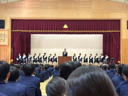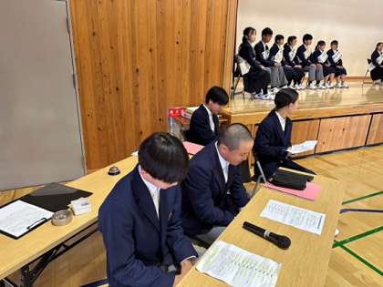 5、6時間目に全校生徒が体育館に集合し、生徒会本部役員選挙立会演説会を行いました。今日のために、しっかりと準備を行い、各立候補者は堂々と演説を行いました。