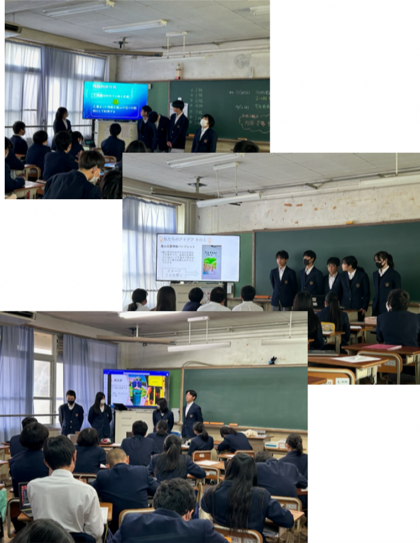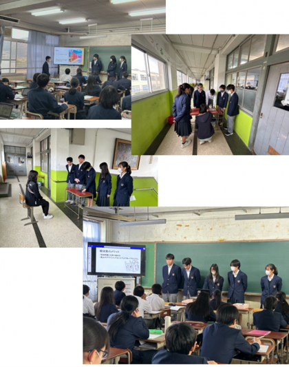 今日のエスの時間にクラス内発表会を行いました。発表に至るまでに、担任の先生に各班チェックをしてもらいアドバイスをもらいながら進めてきました。クラス内発表では、さまざまなアイデアが出ており、みんなメモを取りながら一生懸命聞いていました。各クラスの中から2班ずつ選ばれ、来週の学年発表会にのぞみます。