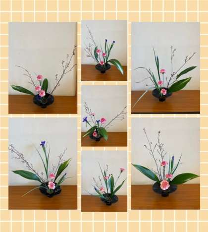 伝統文化部では、今年度最後のいけばなとフラワーアレンジメントのお稽古を行いました。花材はさくらやカーネーションなど、春らしいものを使いました。枝を扱うのに苦労しながらも、バランスを考えながら生けました。また、2年生はいつもとは違う花器を用いての挑戦となりました。どうぞご覧ください。