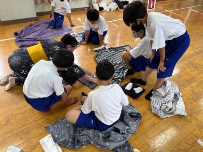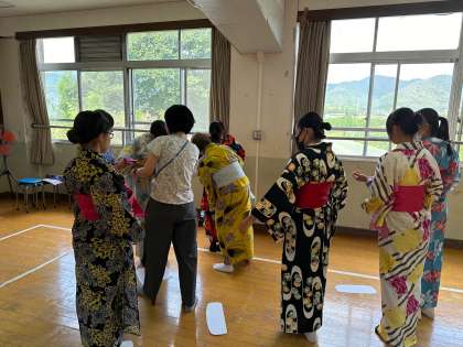 浴衣の着方、帯の結び方、正座礼、浴衣のたたみ方を教えていただきました。帯の結び方は、かなり苦戦していましたが、無事に着ることができました。制服とはまた違った雰囲気で、新たな一面が見えました。