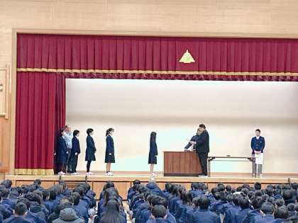 お正月も明け、まだ休み気分が抜けない中ですが、気持ち新たに集中して始業式をおこなうことができました。校長先生からは、今年の干支「乙巳」の話と、これからの時代に順応していくためにも、「先読みする力」と「コミュニケーション力」をつけてほしいという話がありました。