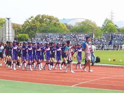 4月29日(祝)に春季総合体育大会の開会式が行われました。本校の代表として,3年生を中心として100人程度の生徒が開会式に参加しました。本校の伝統である「気持ちのこもった行進」を本年度もやり遂げてくれました。「嵯峨中の行進はすごい」という声が,観客席のあちらこちらで聞こえていました。今年も,目標としていた全市ナンバーワンの行進だったのではないでしょうか。