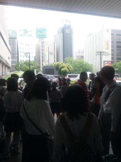 博多駅に到着しました!残念ながら、小雨が降っています。これから体験ごとのバスに乗車します。