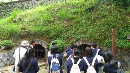 平和記念公園、山里小学校の防空壕、平和セレモニーなどの平和学習中です。