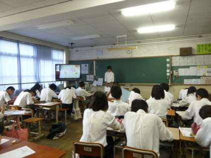 嵯峨中学校では、毎年3年生が「総合的な学習の時間」において、お土産物を企画しています。選出された企画は商品化され、12月の嵐山花灯路で販売されます。今年度は美術科との連携で4月より取り組んできました。今日は、各クラスで企画を発表し、クラス代表を3〜4つ決めました。次週7月17日に学年全体で発表し、さらにしぼっていく予定です。