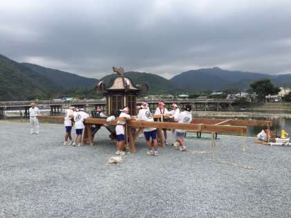 中之島公園では,現在,御輿を組み立てています。