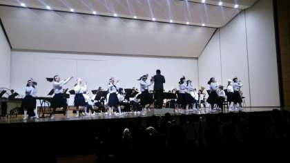 まだ仮入部ながら11名の1年生もステージに上がって演奏に合わせてスタンツを披露しました。恥ずかしさを感じつつも舞台で演じて拍手をもらう快感を味わい、1年生もいい笑顔で頑張っていました。各校ともに趣向を凝らし、得意分野を発揮した演奏で良い演奏会だったと思いました。保護者の皆様にも多数ご来場いただきました。本当にありがとうございました。