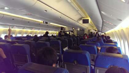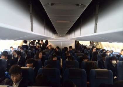 飛行機に乗りました。いよいよ出発です。飛行機の中ではお昼ご飯タイムもあります。一般の方のことも考えて行動できるか、これまでの学年の成長、力の見せどころです。