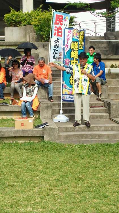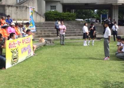 「めんそーれ」入村式です。エイサーで、温かく出迎えていただきました。一泊二日、良い思い出がつくれるように3年生全員で頑張ります。
