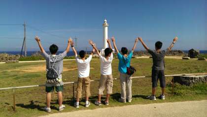 残波岬です。みんな生き生きとした笑顔が印象的です。