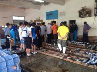 朝10時から行われる魚のせりを見学しています。