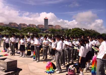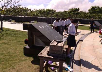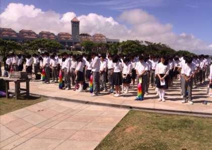 島歌を斉唱したあと、千羽鶴を捧げました。