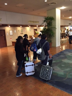無事にホテルに到着しました。暑さで少し疲れ気味ですが,もう少しで夕食だとわかると元気になっていました。