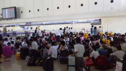 全員が揃いました。17時40分の便に搭乗する予定です。