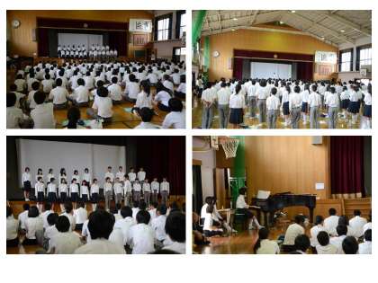 現在,3年生が「合唱コンクール」のリハーサルを行っています。学年合唱の練習のあと,クラス発表の練習をします。