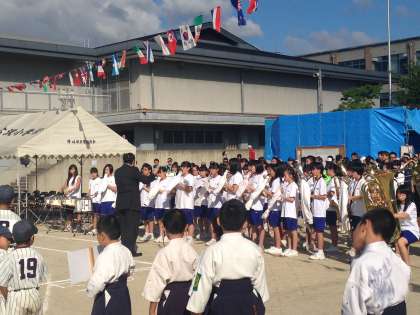 9月20日(日)広沢学区民運動会が行われ、本校吹奏楽部が入場行進の演奏と開会式の式典演奏をさせていただきました。たくさんの地域の方々に吹奏楽部の演奏を見ていただく機会を与えていただきました。体育振興会の方々はじめ関係者の皆様に感謝しております。本当にありがとうございました。写真は当日の演奏の様子です。