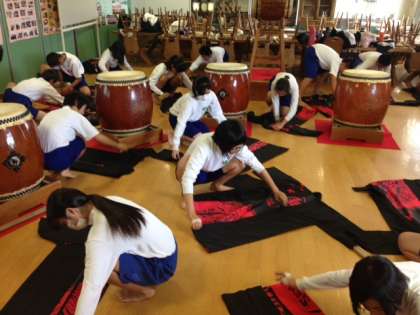 明日の「嵯峨中パレード」に向けて,最後の練習,準備を行っています。