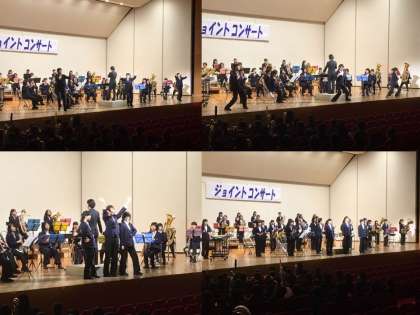 最後に京都橘高等学校吹奏楽部の皆さんとの合同演奏で,嵯峨中は8日の「ブラスエキスポ2016」で京都府吹連合同バンドが演奏する「カーニバルのマーチ」を演奏しました。そして4校の合同演奏では行進曲「星条旗は永遠なれ」とお馴染みの「風になりたい」を演奏しました。