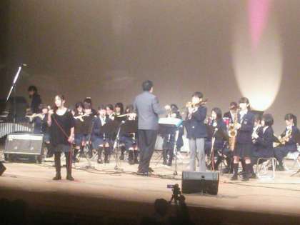 中学校の吹奏楽ステージでは「ふるさと」「津軽海峡冬景色」「宇宙戦艦ヤマト」「サザエさんメドレー」「365日の紙飛行機」「E-Girlsメドレー」を演奏させていただきました。特に「ふるさと」と「365日の紙飛行機」では,部員たちの合唱を途中に入れながら楽しんでもらえればと考えて演奏しました。