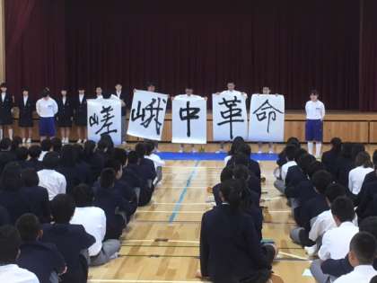 革命が起こせるくらいのパワーを発揮して学校全体を良くできるように頑張りたいと発表されました。