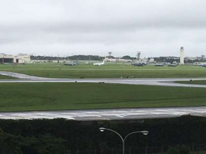 アメリカ軍嘉手納基地を4階展望台から眺めています。