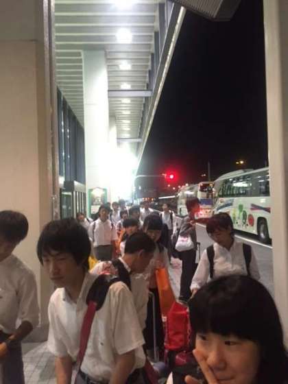 伊丹空港に到着しました。バスに移動しています。