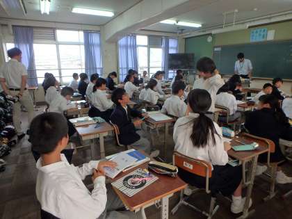 生徒たちの反応を近くで見ながら,小学校の先生と過ごした延長線上に,この中学校時代があるのだなと改めて実感しました。小学校での学びを,更に伸ばしていかなければと思っております。