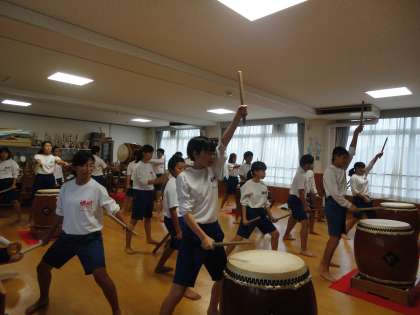 太鼓隊も熱く熟したバチさばきになってきました。一打ち一打ちに魂が込められ,体全体を使った躍動感溢れるたたき方ができるようになり,いい音色と迫力を感じました。