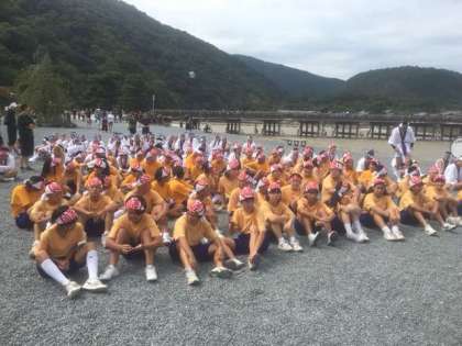 久しぶりの秋晴れの下,嵯峨中パレードが始まります。