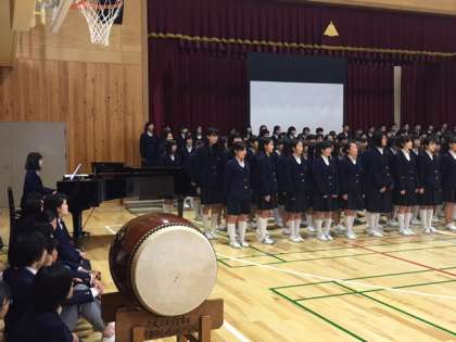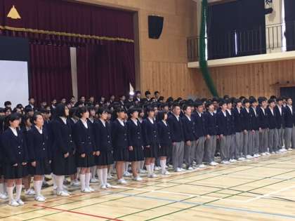 群読で三年間の学びと思い出を振り返り、嵯峨中フェスタで歌った「信じる」をしっかり歌い上げ、三年間の感謝と、これからの嵯峨中を託して、卒業式で歌う「旅立ちの日に」を心を込めて歌ってくれました。