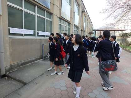 新しいクラスの発表が行われました。掲示された名簿を見て,喜んだり抱き合ったり…。中にはちょっぴり不安そうな人もありましたが,新しい出会いに期待して,臨んでほしいと思います。