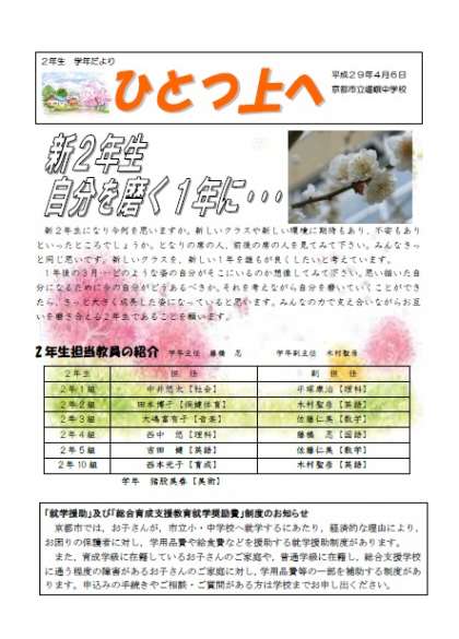 配布文書欄に,2年生の学年だよりと行事予定を掲載しました。