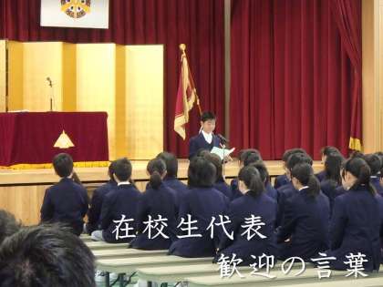 在校生代表歓迎の言葉では,生徒会代表生徒が,中学校生活を紹介するなどし,励ましの言葉を贈りました。