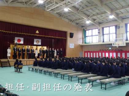 続いて担任,副担任の発表がありました。ステージ上から見る新入生の皆さんは,「どんな先生なんだろう」と不安そうな人もありましたが,「よろしくお願いします」という担任の呼びかけに,笑顔で応えている人もありました。