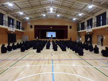 続いて生徒指導の先生から話や,10組担任の先生から育成学級についての話がありました。食育&服育の話もありました。朝ご飯をしっかり食べてから登校してきてほしい,ということや,制服の着こなしをしっかりと,という話です。