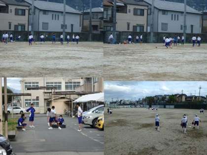 上の写真は,サッカー部(2枚),筋トレをしている相撲部,ソフトボール部の様子です。