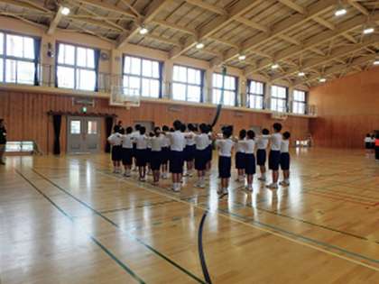 体育館とグラウンドでは体育が行われていました。